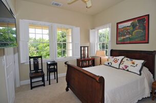Each of our eight guest suites is its own cozy sanctuary away from the hustle and bustle of everyday life. There are four suites on the ground floor, each with an ensuite bathroom. One of these suites is equipped for wheelchair access. There are four additional rooms upstairs, which share two bathrooms, each with double wash basins. Four rooms have king beds, three have queen beds, and one has two twin beds. Six bedrooms have flat-screen televisions. We can accommodate up to sixteen guests.